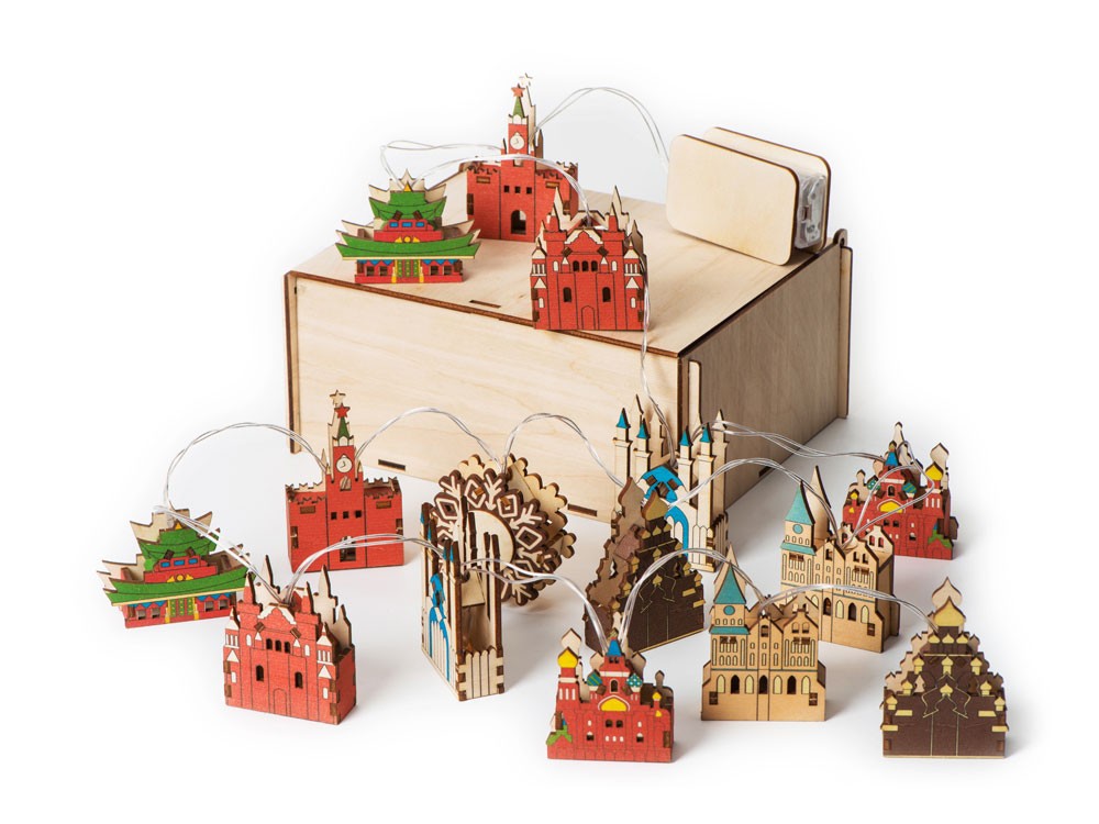Купить Ёлочная гирлянда с лампами в подарочной коробке «Достопримечательности России», с нанесением логотипа компании, индивидуального изображения или гравировкой, Вы можете в магазине корпоративных подарков и бизнес сувениров DIMLE.Более подробную информацию можно уточнить у менеджера по телефону: +7 (977) 760-71-47