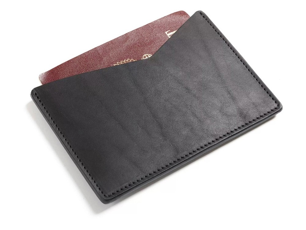 Этот чехол для паспорта сшит из двух кусков качественной кожи с использованием крепких ниток, и отличным образом защищает документы от механических воздействий. В чехол вмещается два паспорта – как раз заграничный и обычный. В боковых отделениях можно разместить пластиковые карты или права. При желании в него также можно положить документы на машину – то есть весь набор документов, которые часто требуется иметь под рукой.