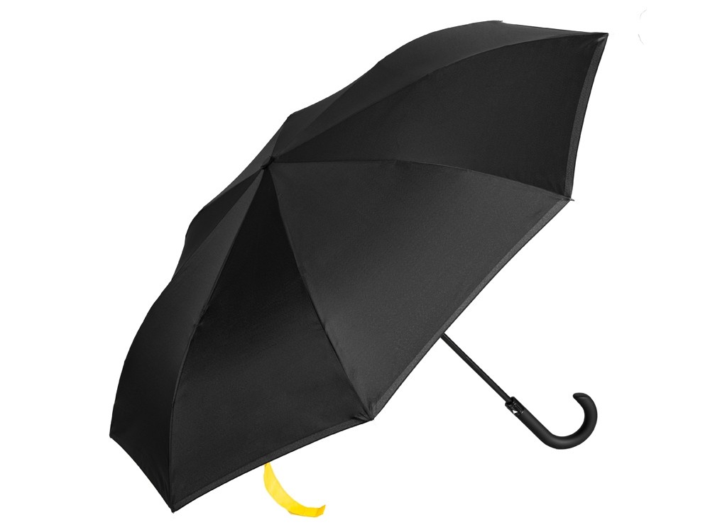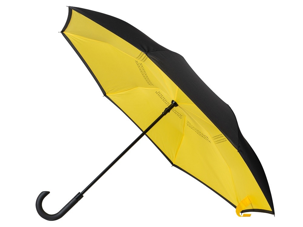 Купить Зонт-трость наоборот Inversa, полуавтомат, черный/желтый (Р), с нанесением логотипа компании, индивидуального изображения или гравировкой, Вы можете в магазине корпоративных подарков и бизнес сувениров DIMLE.Более подробную информацию можно уточнить у менеджера по телефону: +7 (977) 760-71-47