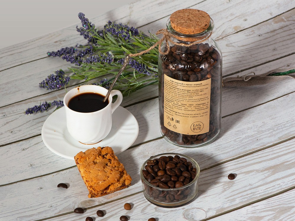 Купить Кофе зерновой с корицей, с нанесением логотипа компании, индивидуального изображения или гравировкой, Вы можете в магазине корпоративных подарков и бизнес сувениров DIMLE.Более подробную информацию можно уточнить у менеджера по телефону: +7 (977) 760-71-47