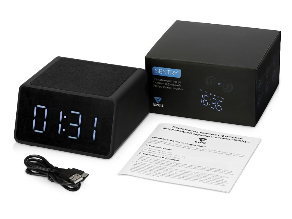 Купить Беспроводная колонка с часами и функцией беспроводной зарядки «Sentry», черный (P), с нанесением логотипа компании, индивидуального изображения или гравировкой, Вы можете в магазине корпоративных подарков и бизнес сувениров DIMLE.Более подробную информацию можно уточнить у менеджера по телефону: +7 (977) 760-71-47