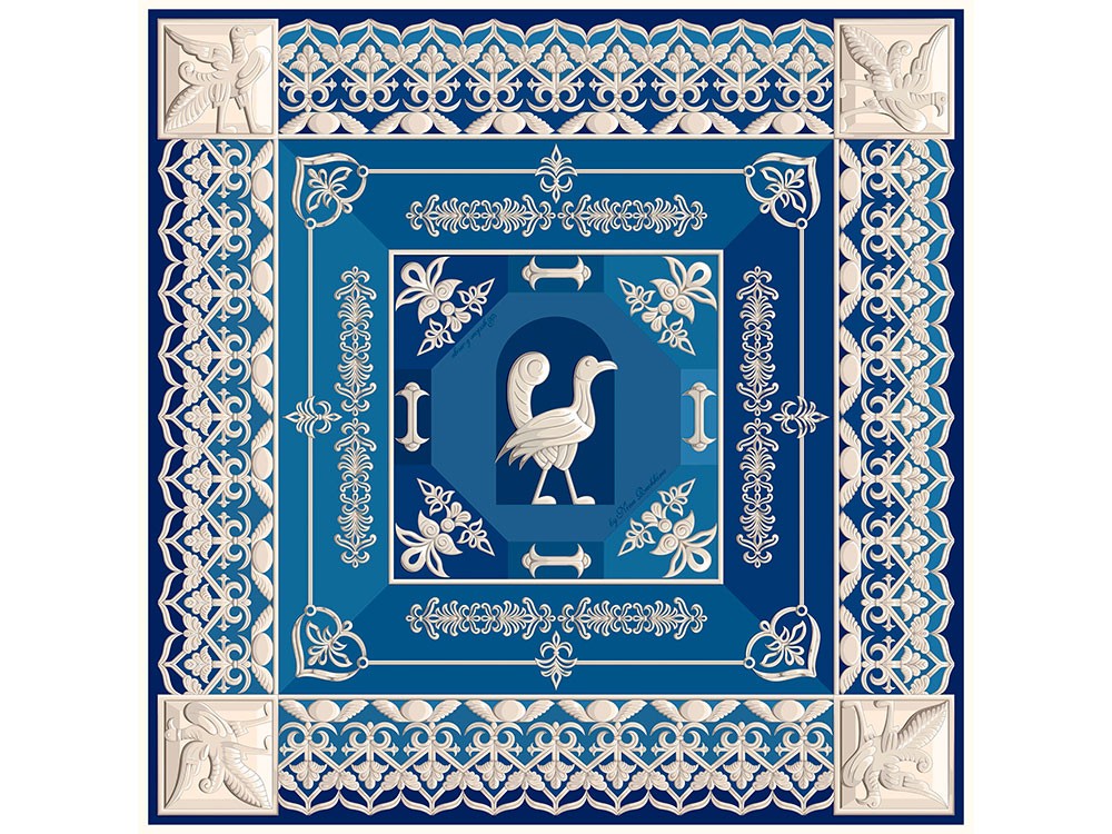 Надеемся, что этот замечательный платок напомнит вам творчество наших талантливых предков, рельефы белокаменного зодчества Северо-Восточной Руси и поможет вашей душу воспарить, как птицы, на нем изображенные.