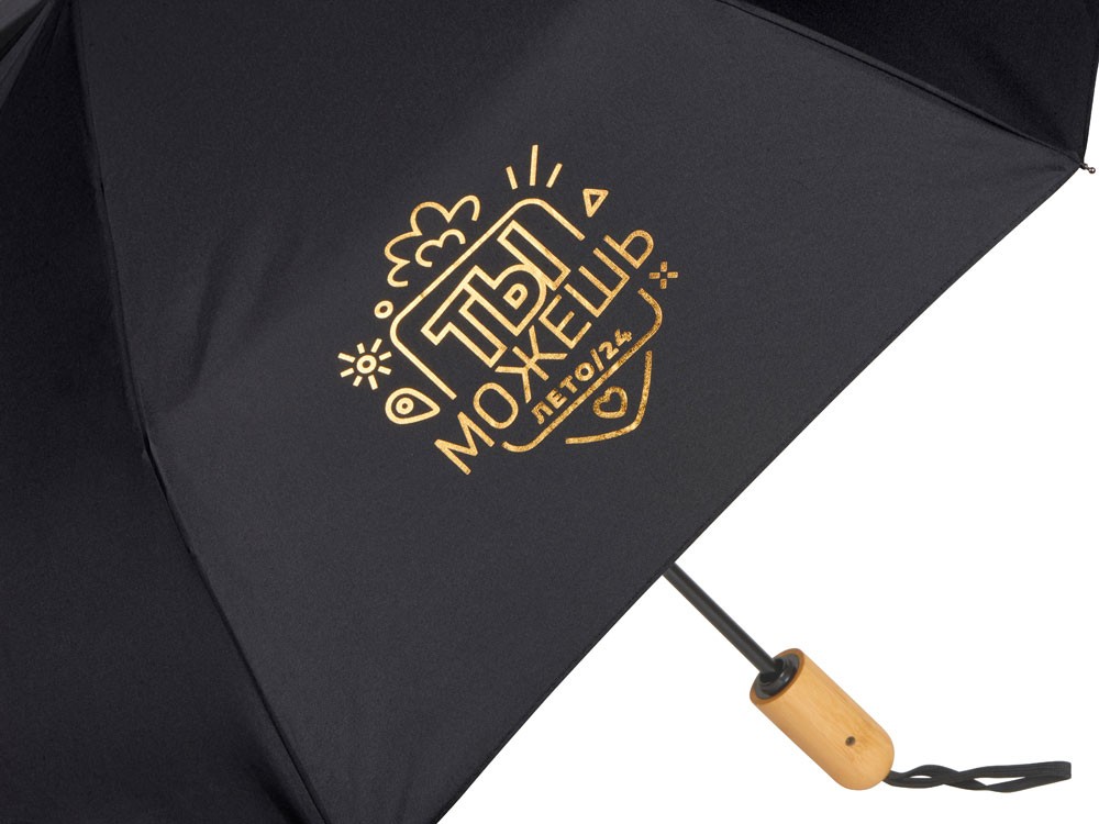 Купить Зонт-автомат Lumet с куполом из переработанного пластика, черный c трафаретной печатью фольгой, с нанесением логотипа компании, индивидуального изображения или гравировкой, Вы можете в магазине корпоративных подарков и бизнес сувениров DIMLE.Более подробную информацию можно уточнить у менеджера по телефону: +7 (977) 760-71-47
