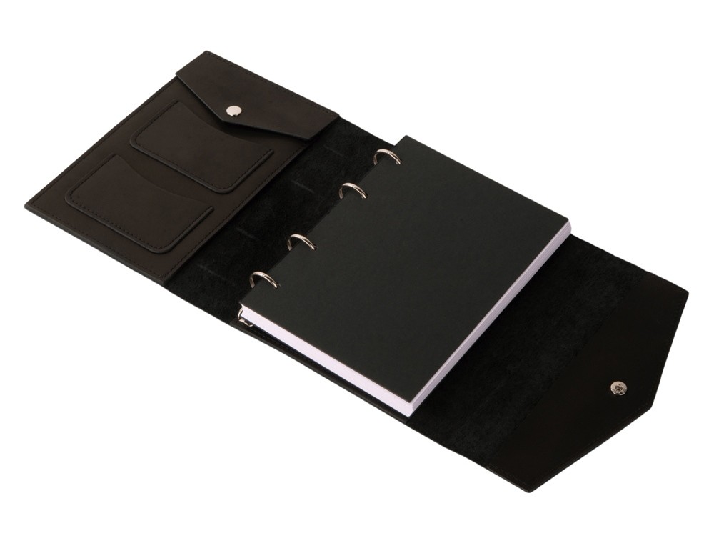 Купить Блокнот кожаный А5 на кольцах, черный, с нанесением логотипа компании, индивидуального изображения или гравировкой, Вы можете в магазине корпоративных подарков и бизнес сувениров DIMLE.Более подробную информацию можно уточнить у менеджера по телефону: +7 (977) 760-71-47