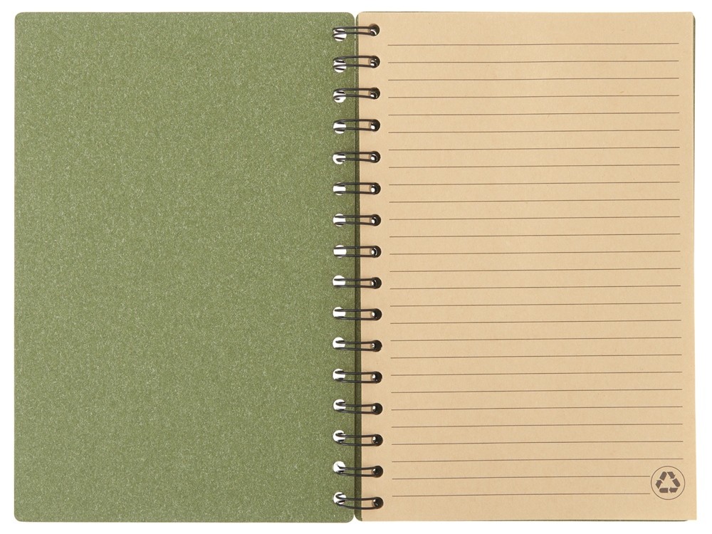 Купить Блокнот на спирали в картонной обложке с переработанной бумагой "Mania", зеленый, с нанесением логотипа компании, индивидуального изображения или гравировкой, Вы можете в магазине корпоративных подарков и бизнес сувениров DIMLE.Более подробную информацию можно уточнить у менеджера по телефону: +7 (977) 760-71-47