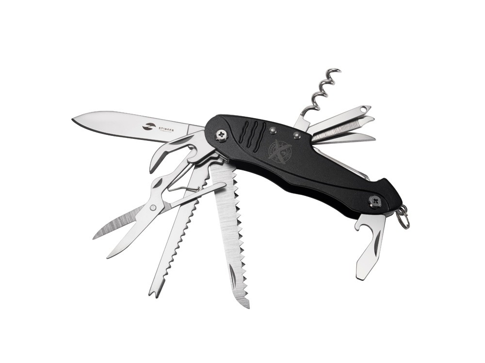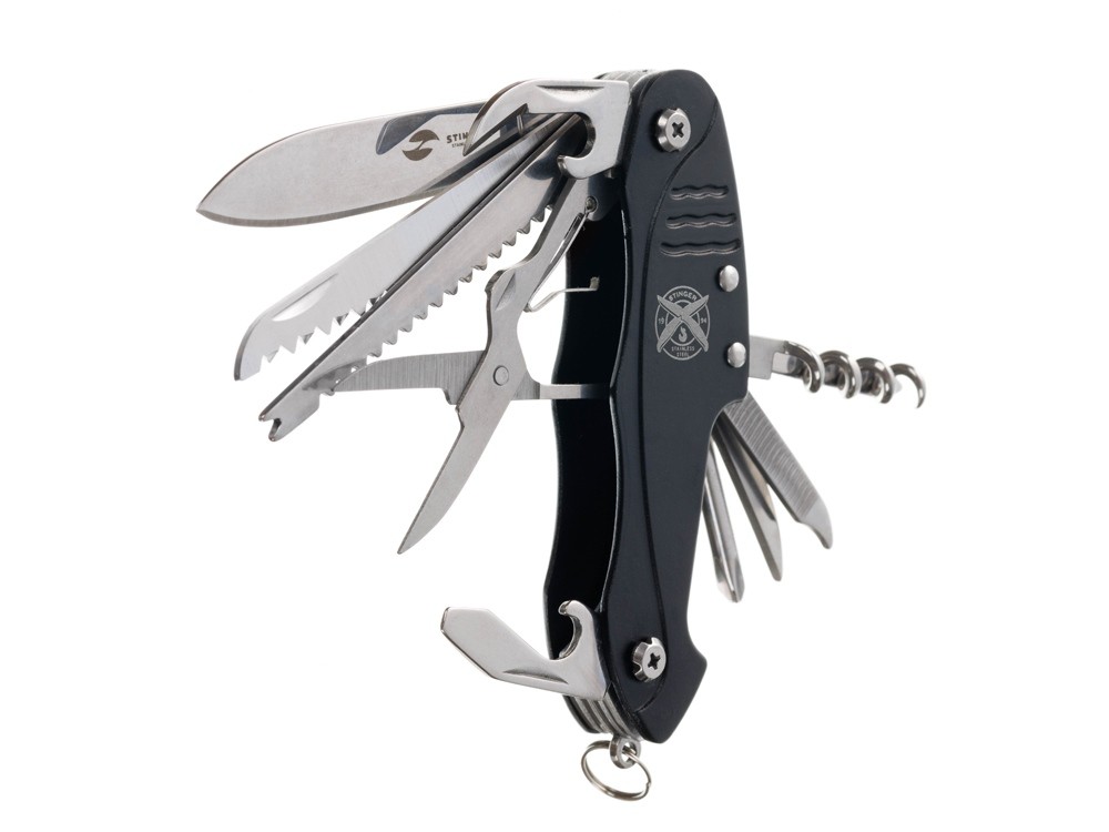 Купить Нож перочинный Stinger, 96 мм, 15 функций, материал рукояти: алюминий (черный), с нанесением логотипа компании, индивидуального изображения или гравировкой, Вы можете в магазине корпоративных подарков и бизнес сувениров DIMLE.Более подробную информацию можно уточнить у менеджера по телефону: +7 (977) 760-71-47
