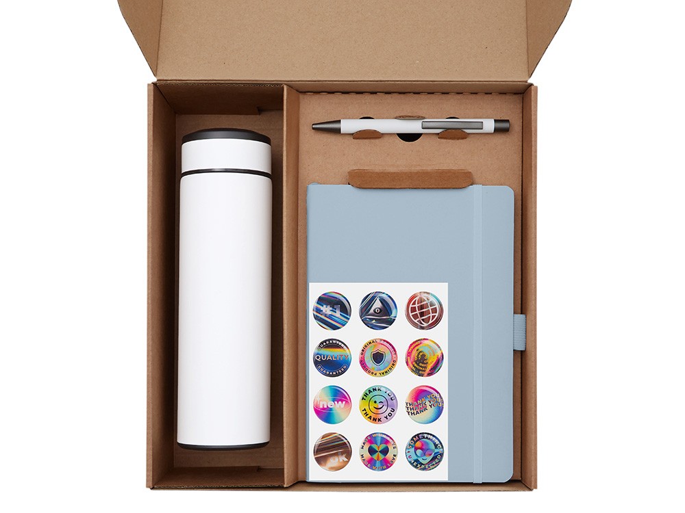 Купить Подарочный набор с термосом, блокнотом, ручкой и чаем, голубой, с нанесением логотипа компании, индивидуального изображения или гравировкой, Вы можете в магазине корпоративных подарков и бизнес сувениров DIMLE.Более подробную информацию можно уточнить у менеджера по телефону: +7 (977) 760-71-47