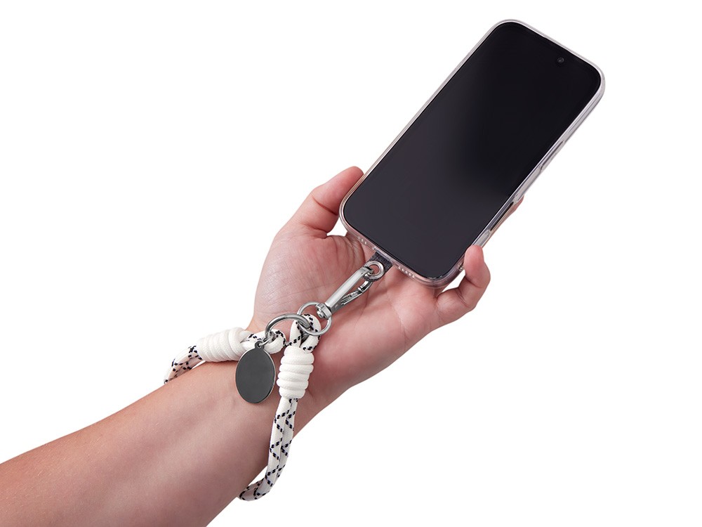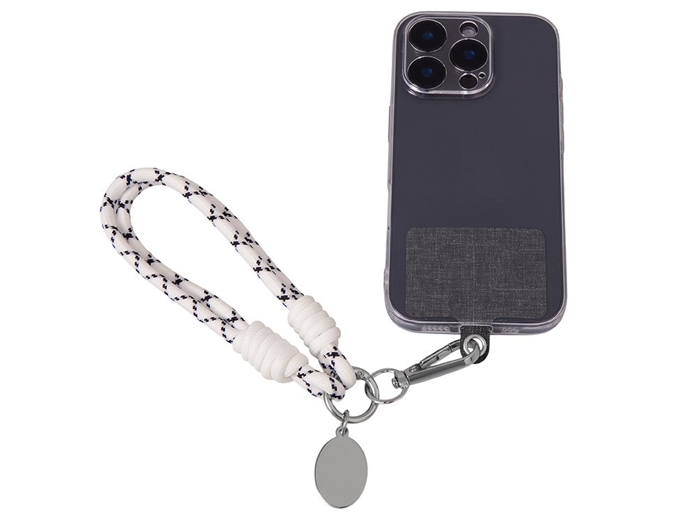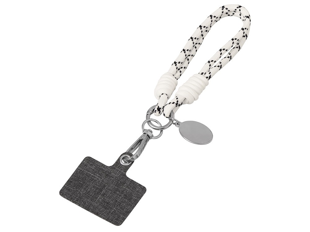 Купить Брелок-браслет "Bohemian" c тканевым держателем для телефона, бело-черный, с нанесением логотипа компании, индивидуального изображения или гравировкой, Вы можете в магазине корпоративных подарков и бизнес сувениров DIMLE.Более подробную информацию можно уточнить у менеджера по телефону: +7 (977) 760-71-47