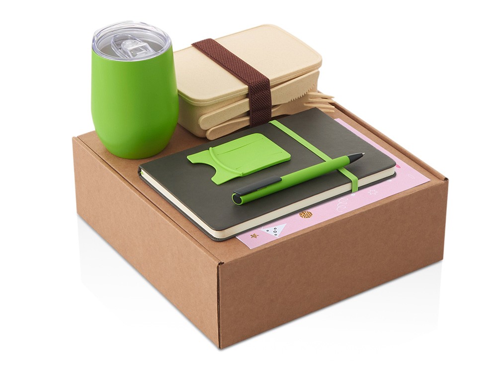Купить Набор с термокружкой, блокнотом, ручкой и ланчбоксом "Refreshment", зеленое яблоко, с нанесением логотипа компании, индивидуального изображения или гравировкой, Вы можете в магазине корпоративных подарков и бизнес сувениров DIMLE.Более подробную информацию можно уточнить у менеджера по телефону: +7 (977) 760-71-47