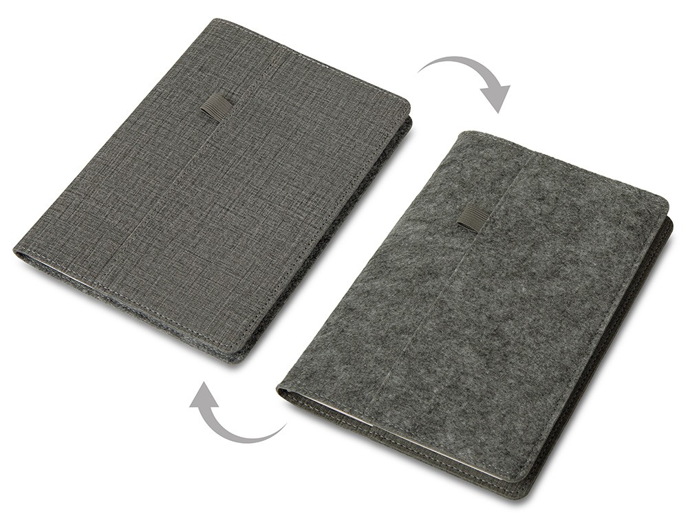 Купить Двустороннее портфолио из рпет-фетра и искусственной кожи "Felt", серый, с нанесением логотипа компании, индивидуального изображения или гравировкой, Вы можете в магазине корпоративных подарков и бизнес сувениров DIMLE.Более подробную информацию можно уточнить у менеджера по телефону: +7 (977) 760-71-47