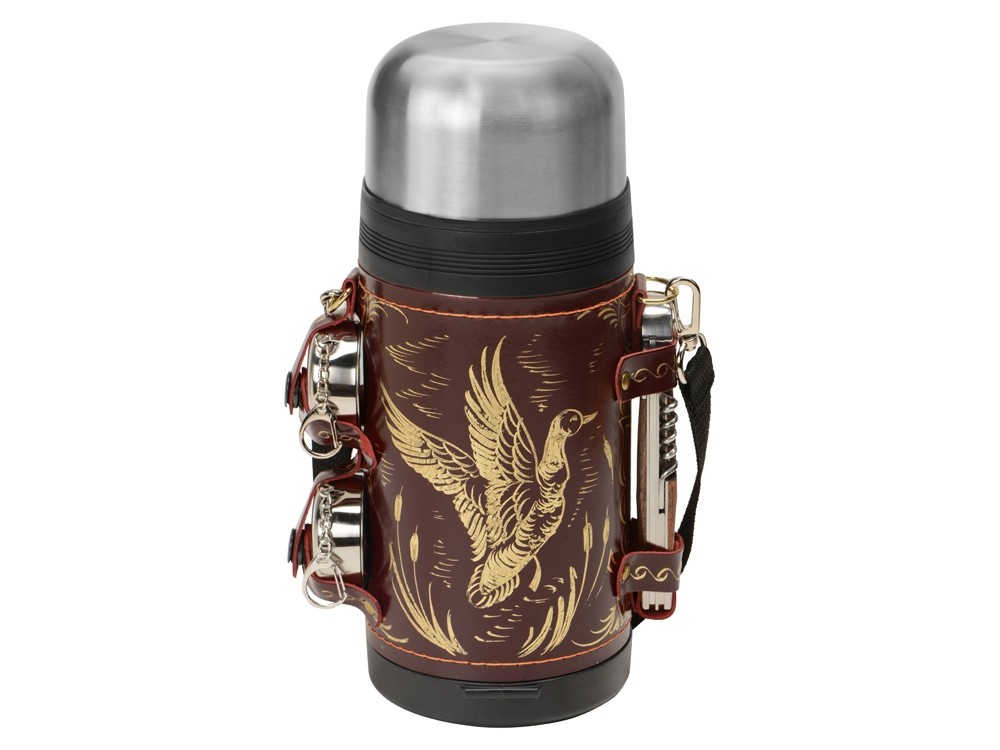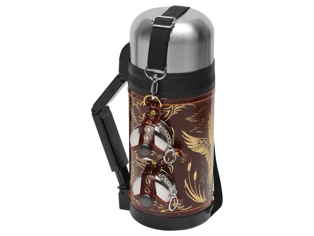 Купить Термос в кожаном чехле, 1,2л, бордовая кожа, с нанесением логотипа компании, индивидуального изображения или гравировкой, Вы можете в магазине корпоративных подарков и бизнес сувениров DIMLE.Более подробную информацию можно уточнить у менеджера по телефону: +7 (977) 760-71-47