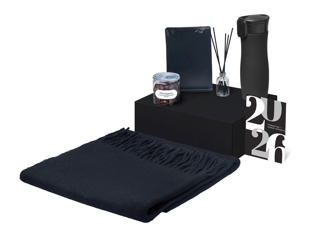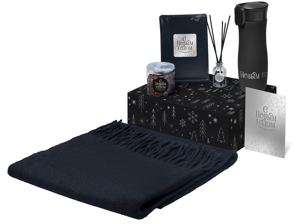 Купить Подарочный набор с палантином и термокружкой, черный, с нанесением логотипа компании, индивидуального изображения или гравировкой, Вы можете в магазине корпоративных подарков и бизнес сувениров DIMLE.Более подробную информацию можно уточнить у менеджера по телефону: +7 (977) 760-71-47