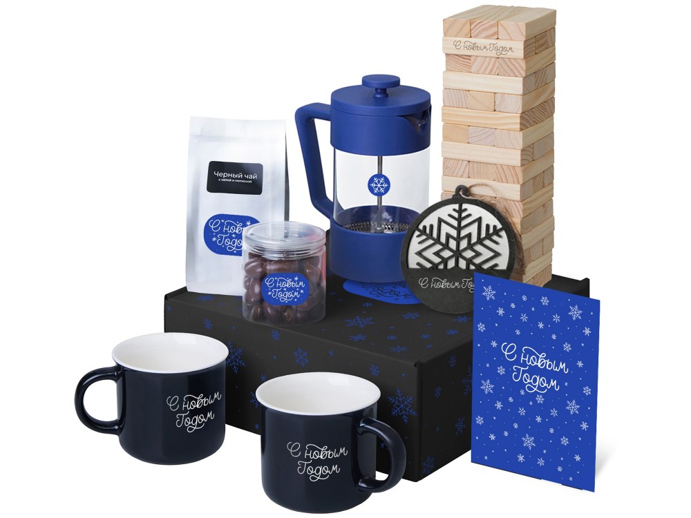 Купить Подарочный набор c френчпрессом, кружками и чаем, синий, с нанесением логотипа компании, индивидуального изображения или гравировкой, Вы можете в магазине корпоративных подарков и бизнес сувениров DIMLE.Более подробную информацию можно уточнить у менеджера по телефону: +7 (977) 760-71-47