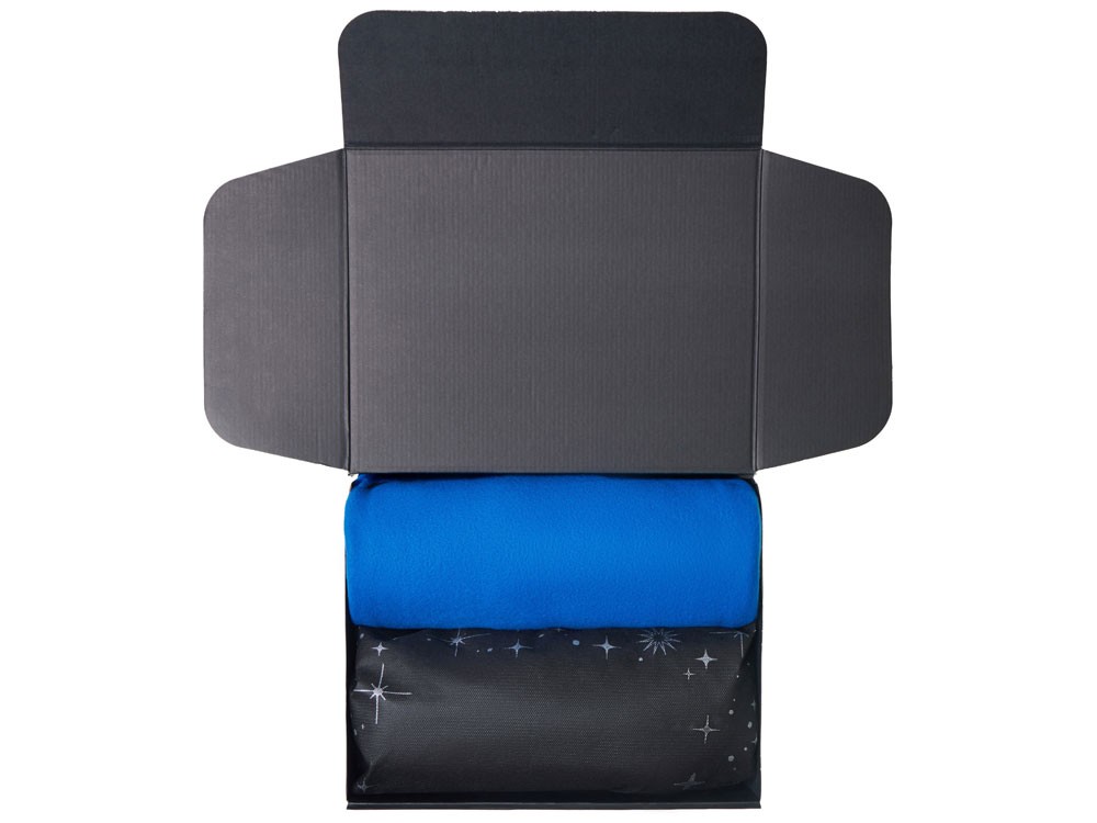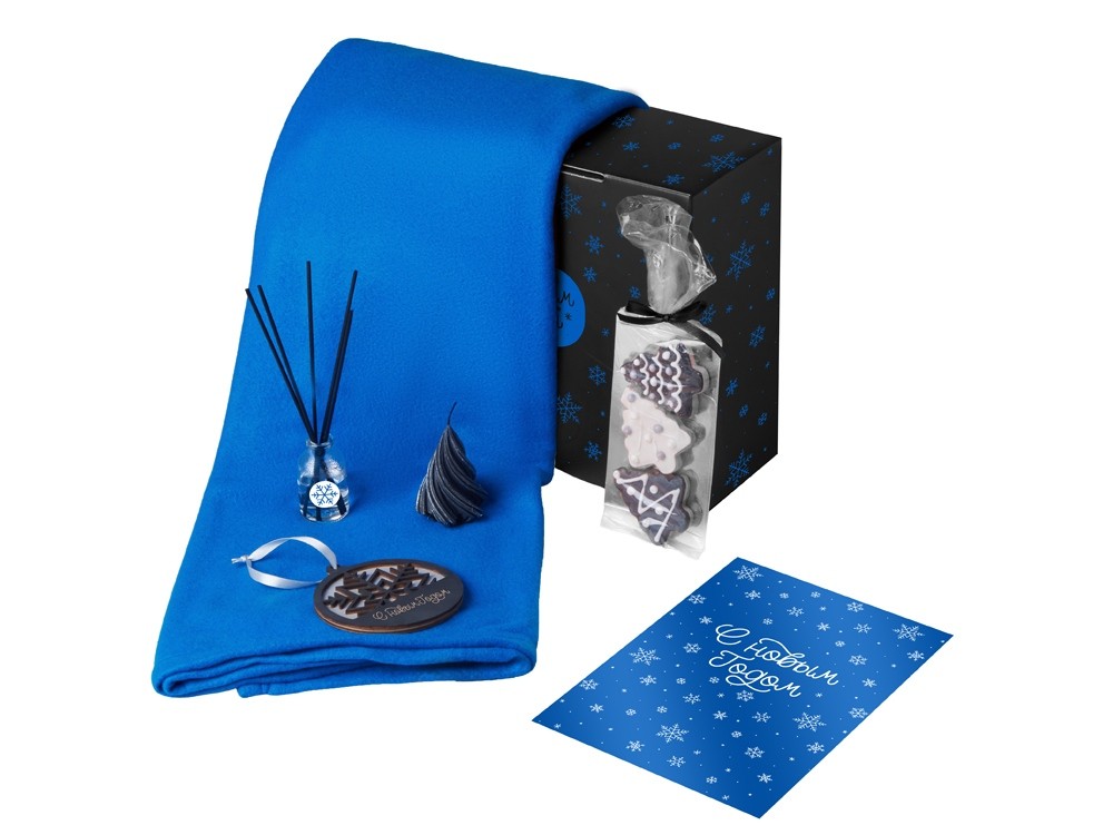 Купить Подарочный набор с пледом, свечой и диффузором, синий, с нанесением логотипа компании, индивидуального изображения или гравировкой, Вы можете в магазине корпоративных подарков и бизнес сувениров DIMLE.