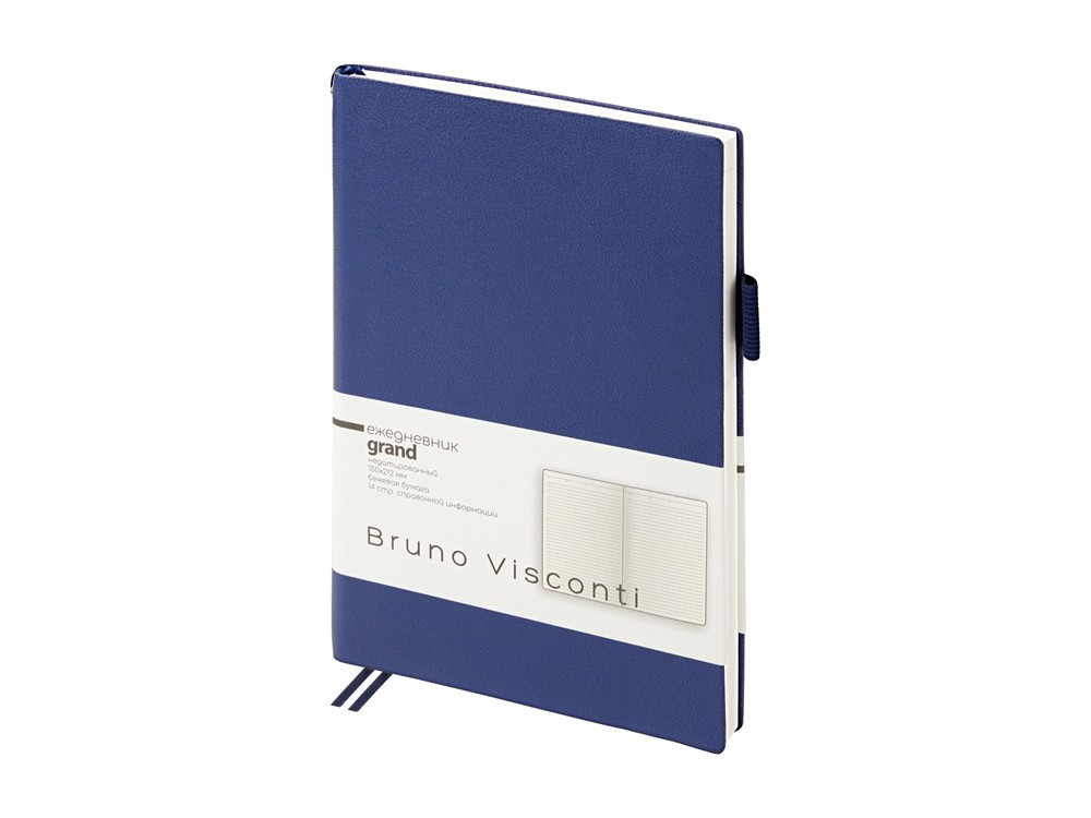 Купить Ежедневник недатированный А5 "Grand", синий, с нанесением логотипа компании, индивидуального изображения или гравировкой, Вы можете в магазине корпоративных подарков и бизнес сувениров DIMLE.Более подробную информацию можно уточнить у менеджера по телефону: +7 (977) 760-71-47