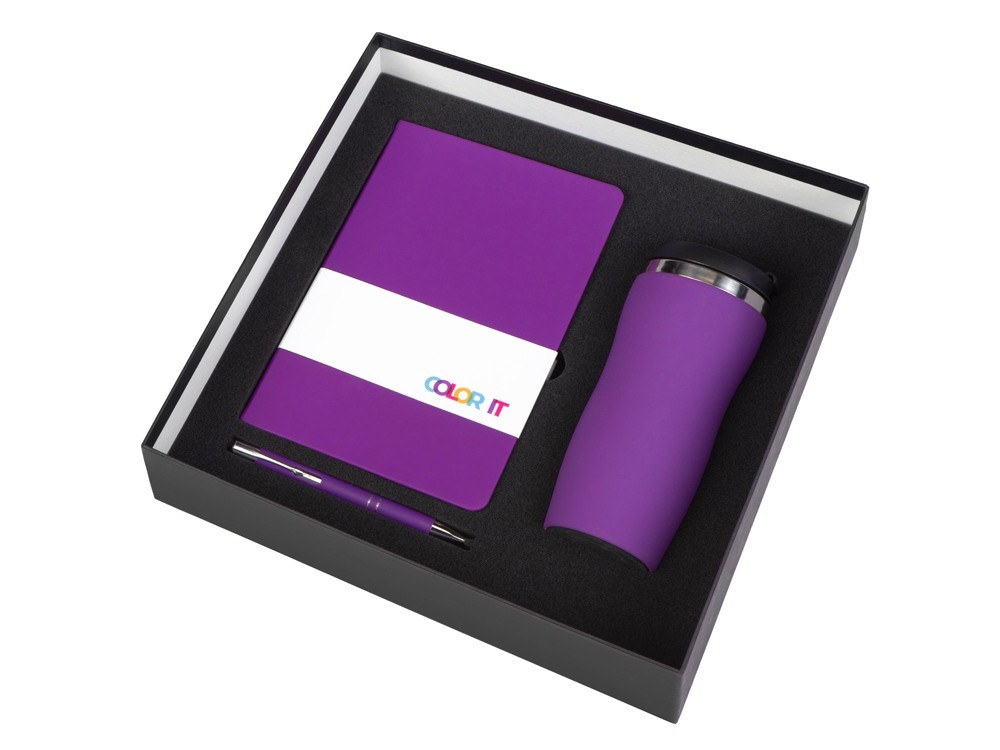 Купить Подарочный набор с блокнотом С1, металлической ручкой и термокружкой, фиолетовый, с нанесением логотипа компании, индивидуального изображения или гравировкой, Вы можете в магазине корпоративных подарков и бизнес сувениров DIMLE.Более подробную информацию можно уточнить у менеджера по телефону: +7 (977) 760-71-47