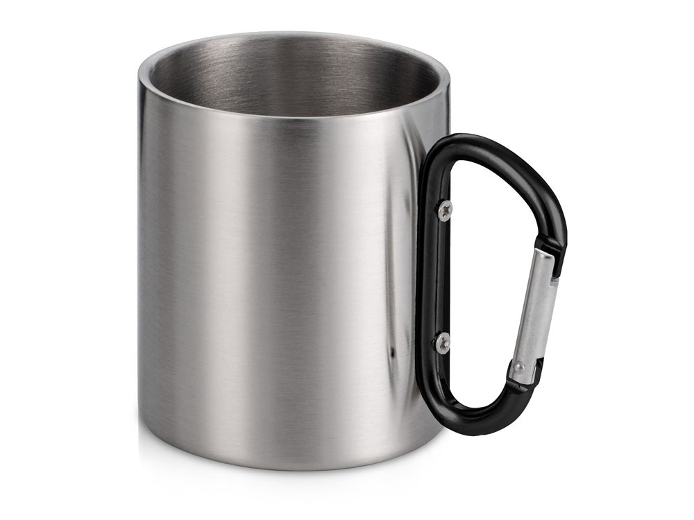 Купить Стальная кружка Elbrus с двойными стенками и ручкой-карабином, 300 мл (глянцевая), черный, с нанесением логотипа компании, индивидуального изображения или гравировкой, Вы можете в магазине корпоративных подарков и бизнес сувениров DIMLE.