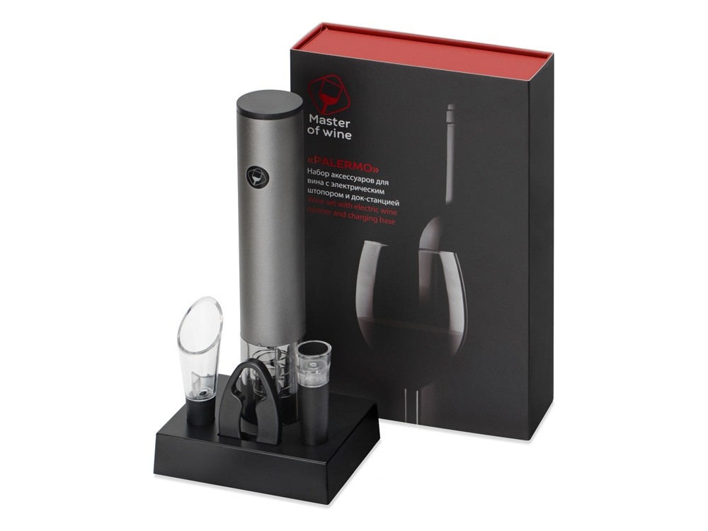 Купить Набор винных аксессуаров Palermo с электрическим штопором на док-станции, с нанесением логотипа компании, индивидуального изображения или гравировкой, Вы можете в магазине корпоративных подарков и бизнес сувениров DIMLE.Более подробную информацию можно уточнить у менеджера по телефону: +7 (977) 760-71-47