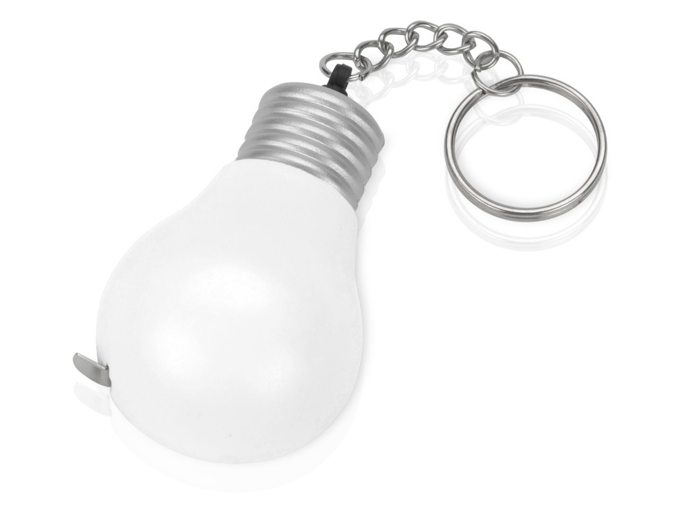 Купить Брелок-рулетка для ключей "Лампочка", белый/серебристый, с нанесением логотипа компании, индивидуального изображения или гравировкой, Вы можете в магазине корпоративных подарков и бизнес сувениров DIMLE.Более подробную информацию можно уточнить у менеджера по телефону: +7 (977) 760-71-47