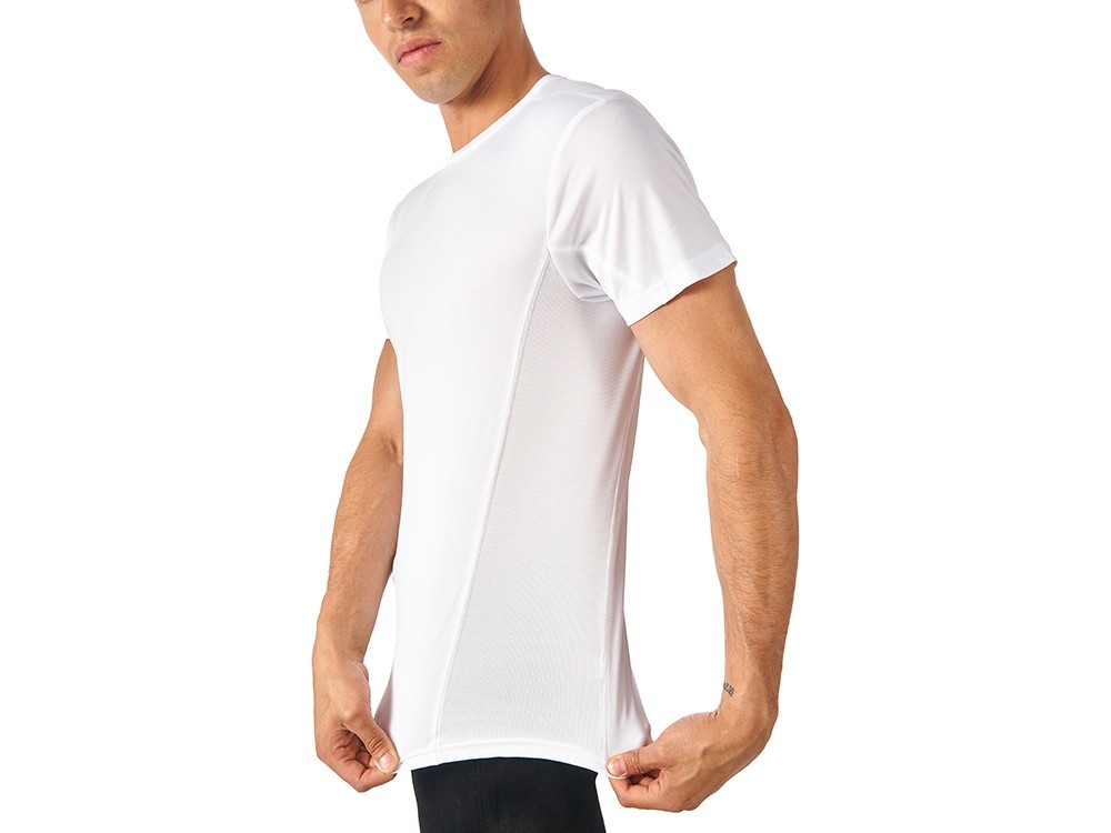 Мужская спортивная футболка выполнена из двух разных видов полотна: спинка и перед из интерлока имеют гладкую поверхность, а декоративные вставки выполнены из спортивной сетки ячеистой структуры. Благодаря наличию таких вставок воздух свободно проникает под футболку, охлаждая кожу во время спортивных нагрузок. Ткань, из которой выполнено полотно, сохраняет форму и цвет даже при частых стирках, а декоративная отстрочка позволяет футболке держать форму. • комфортная посадка не сковывает движения во время занятий спортом • хорошо держит форму при частых стирках, не линяя и не деформируясь • сетчатые вставки для вентиляции