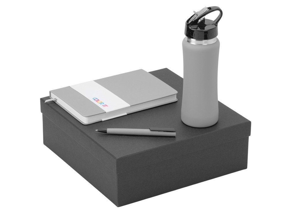 Купить Подарочный набор c блокнотом C2, ручкой и бутылкой, серый, с нанесением логотипа компании, индивидуального изображения или гравировкой, Вы можете в магазине корпоративных подарков и бизнес сувениров DIMLE.Более подробную информацию можно уточнить у менеджера по телефону: +7 (977) 760-71-47