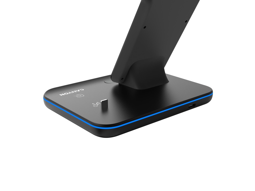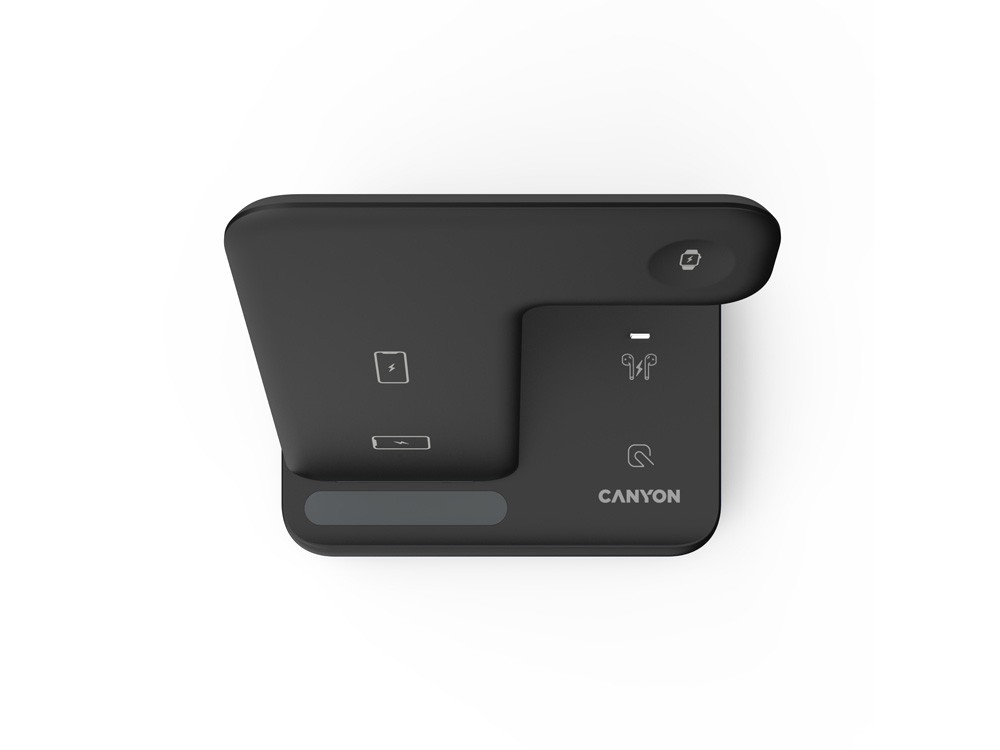 Купить Беспроводное зарядное устройство для гаджетов "3-в-1" с технологией QI Canyon WS-302 (CNS-WCS302B), черный, с нанесением логотипа компании, индивидуального изображения или гравировкой, Вы можете в магазине корпоративных подарков и бизнес сувениров DIMLE.Более подробную информацию можно уточнить у менеджера по телефону: +7 (977) 760-71-47