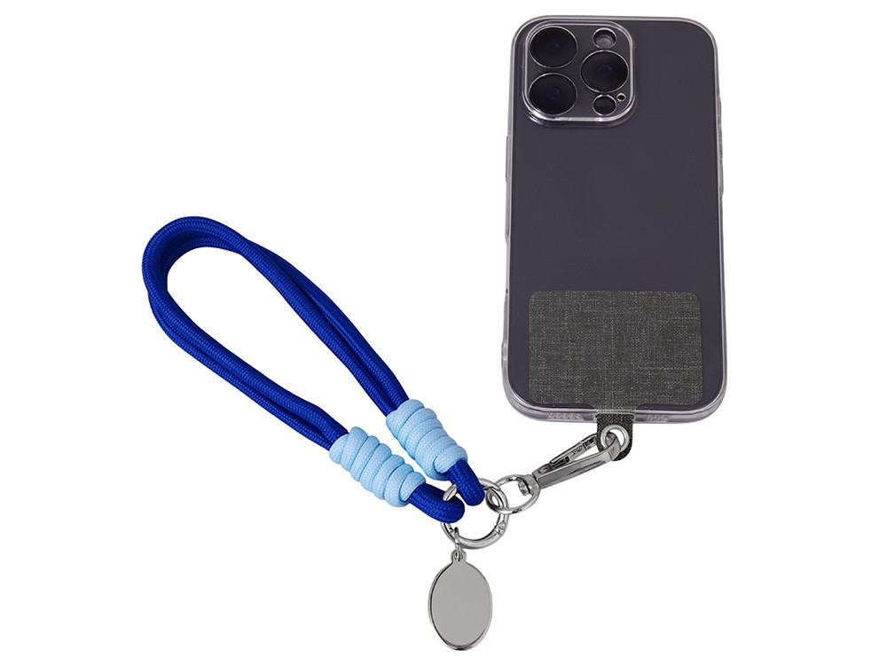 Купить Брелок-браслет "Bohemian" c тканевым держателем для телефона, синий, с нанесением логотипа компании, индивидуального изображения или гравировкой, Вы можете в магазине корпоративных подарков и бизнес сувениров DIMLE.Более подробную информацию можно уточнить у менеджера по телефону: +7 (977) 760-71-47
