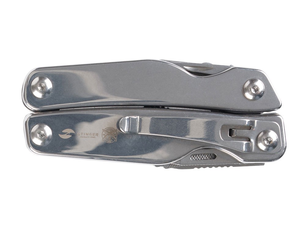 Купить Мультитул Stinger, 100x45 мм, 11 функций, сталь, серебристый, в комплекте нейлоновый чехол, с нанесением логотипа компании, индивидуального изображения или гравировкой, Вы можете в магазине корпоративных подарков и бизнес сувениров DIMLE.Более подробную информацию можно уточнить у менеджера по телефону: +7 (977) 760-71-47
