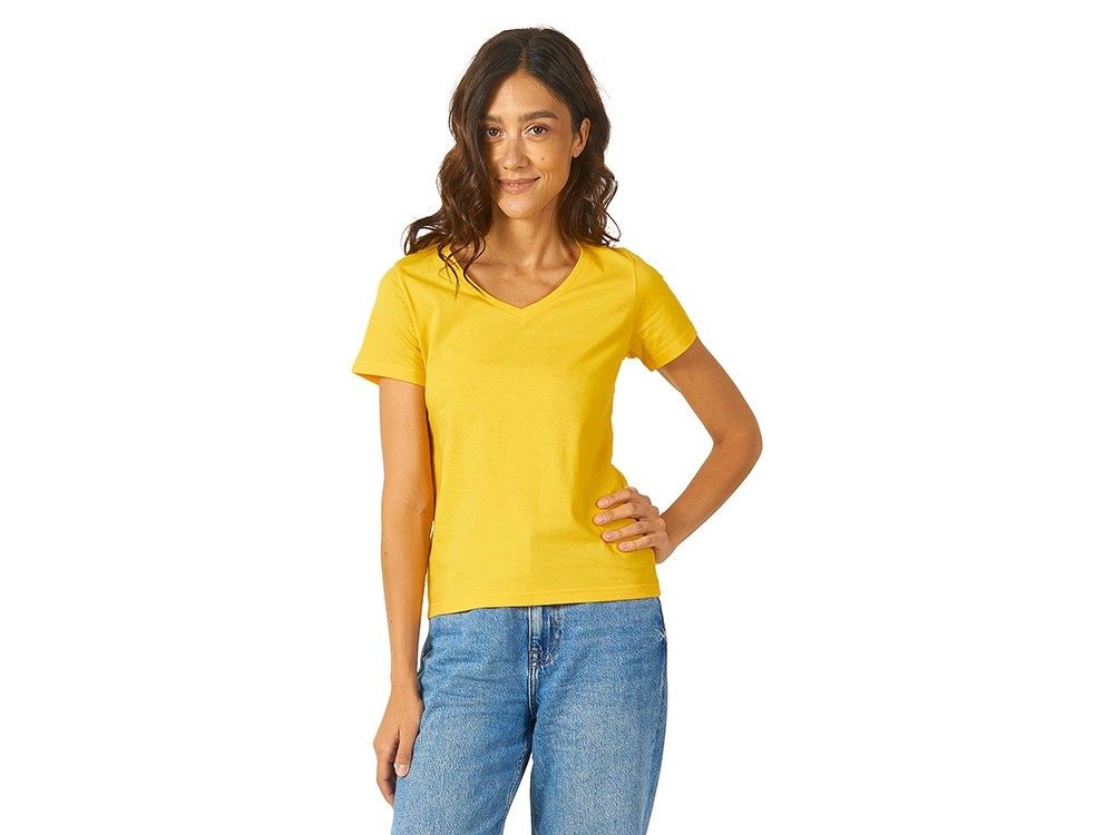 Купить Футболка "Heavy Super Club" женская с V-образным вырезом, золотисто-желтый, с нанесением логотипа компании, индивидуального изображения или гравировкой, Вы можете в магазине корпоративных подарков и бизнес сувениров DIMLE.Более подробную информацию можно уточнить у менеджера по телефону: +7 (977) 760-71-47