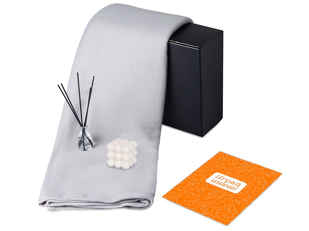 Купить Подарочный набор с пледом, свечой и диффузором, серый, с нанесением логотипа компании, индивидуального изображения или гравировкой, Вы можете в магазине корпоративных подарков и бизнес сувениров DIMLE.