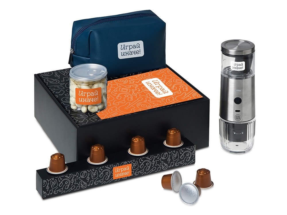 Купить Подарочный набор «Re:y. Boost» с кофемашиной, капсулами и косметичкой, с нанесением логотипа компании, индивидуального изображения или гравировкой, Вы можете в магазине корпоративных подарков и бизнес сувениров DIMLE.