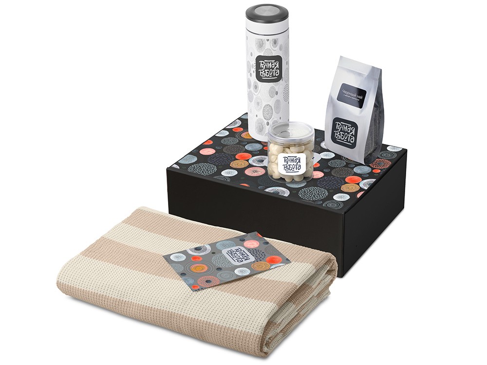 Купить Подарочный набор «Re:y. Warm» с пледом, термосом и чаем, с нанесением логотипа компании, индивидуального изображения или гравировкой, Вы можете в магазине корпоративных подарков и бизнес сувениров DIMLE.