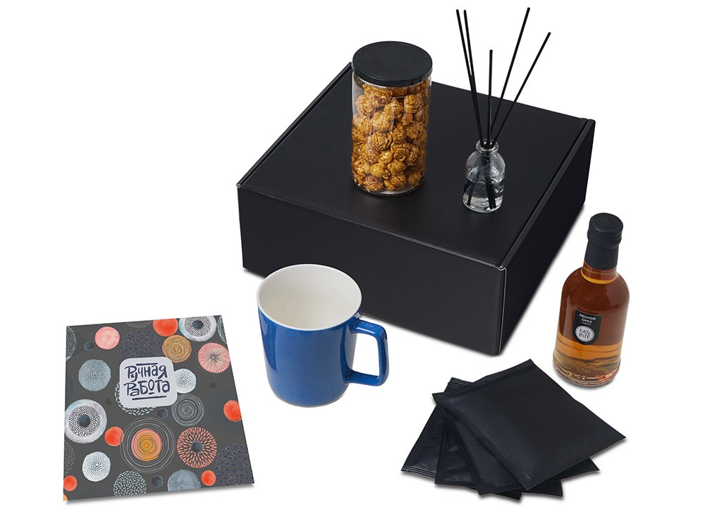 Купить Подарочный набор «Re:y. Treat» с кружкой, сиропом и попкорном, с нанесением логотипа компании, индивидуального изображения или гравировкой, Вы можете в магазине корпоративных подарков и бизнес сувениров DIMLE.