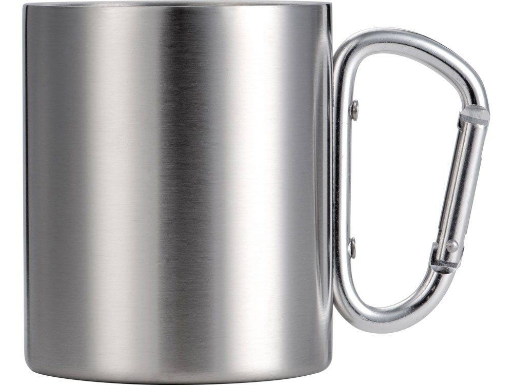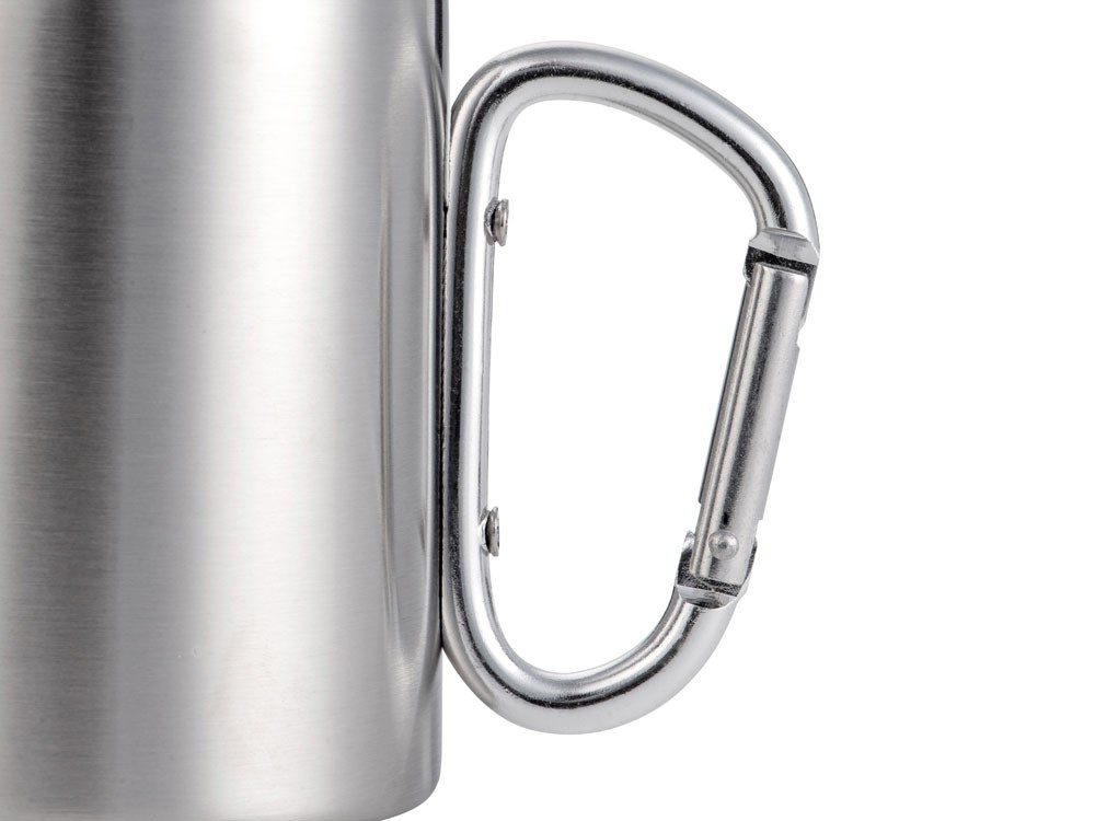 Купить Стальная кружка Elbrus с двойными стенками и ручкой-карабином, 300 мл (глянц), серебристый (P), с нанесением логотипа компании, индивидуального изображения или гравировкой, Вы можете в магазине корпоративных подарков и бизнес сувениров DIMLE.Более подробную информацию можно уточнить у менеджера по телефону: +7 (977) 760-71-47