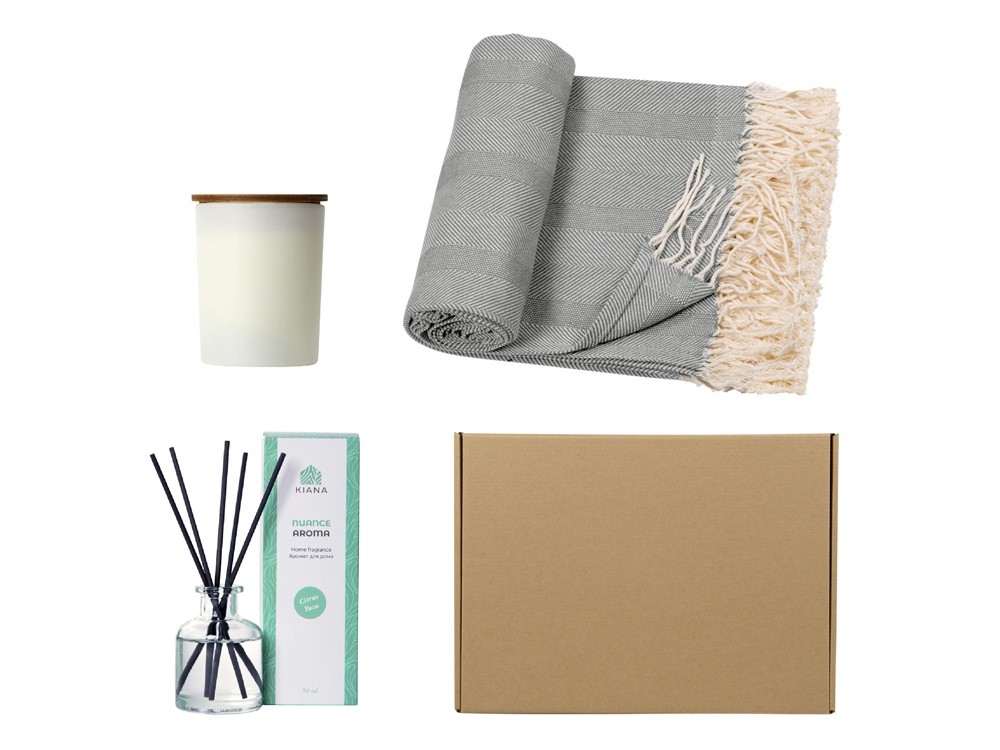 Купить Подарочный набор с пледом, свечой и диффузором, серый, с нанесением логотипа компании, индивидуального изображения или гравировкой, Вы можете в магазине корпоративных подарков и бизнес сувениров DIMLE.Более подробную информацию можно уточнить у менеджера по телефону: +7 (977) 760-71-47