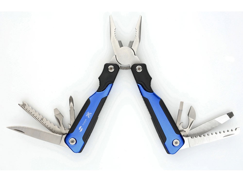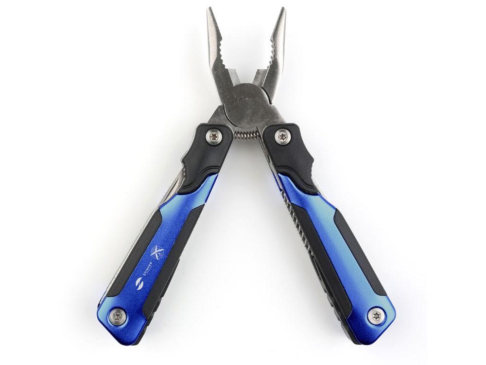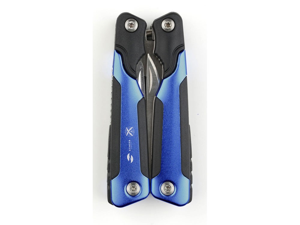 Купить Мультитул Stinger, 104x45 мм, 15 функций, сталь/пластик, сине-чёрный, в комплекте нейлоновый чехол, с нанесением логотипа компании, индивидуального изображения или гравировкой, Вы можете в магазине корпоративных подарков и бизнес сувениров DIMLE.Более подробную информацию можно уточнить у менеджера по телефону: +7 (977) 760-71-47