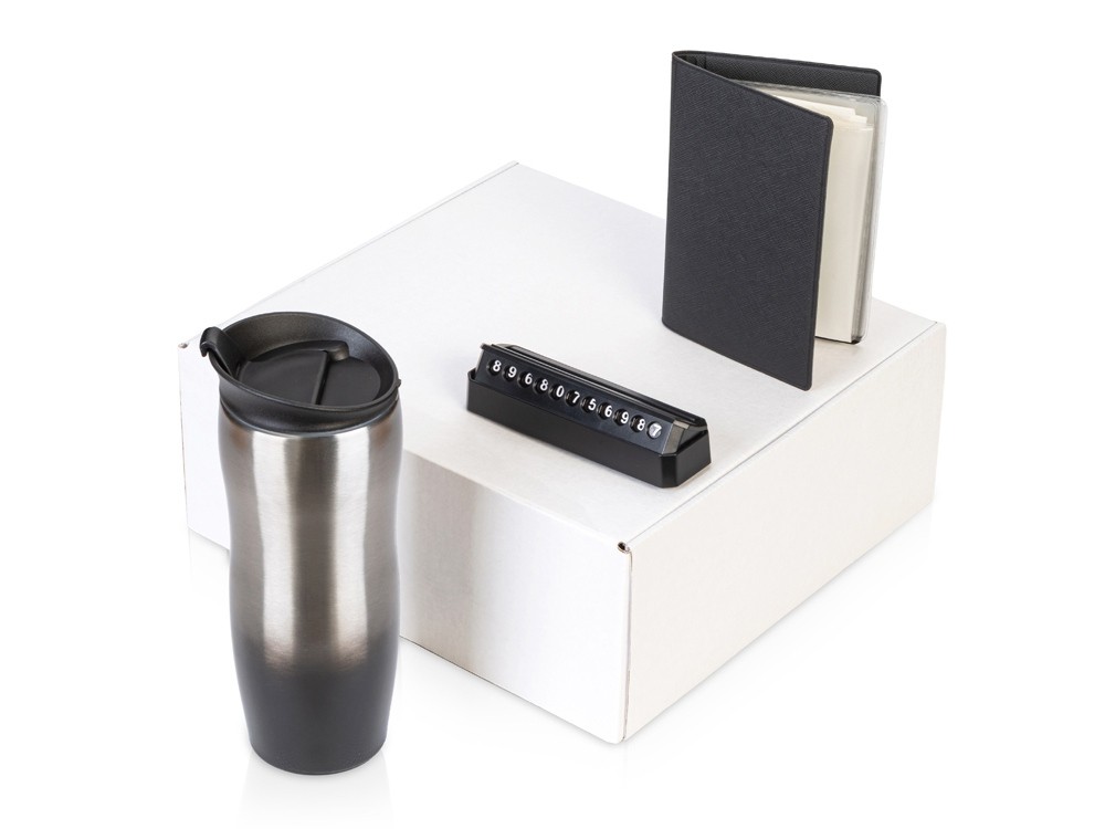 Купить Подарочный набор «Vice» с термокружкой, парковочной визиткой и обложкой для документов, с нанесением логотипа компании, индивидуального изображения или гравировкой, Вы можете в магазине корпоративных подарков и бизнес сувениров DIMLE.Более подробную информацию можно уточнить у менеджера по телефону: +7 (977) 760-71-47