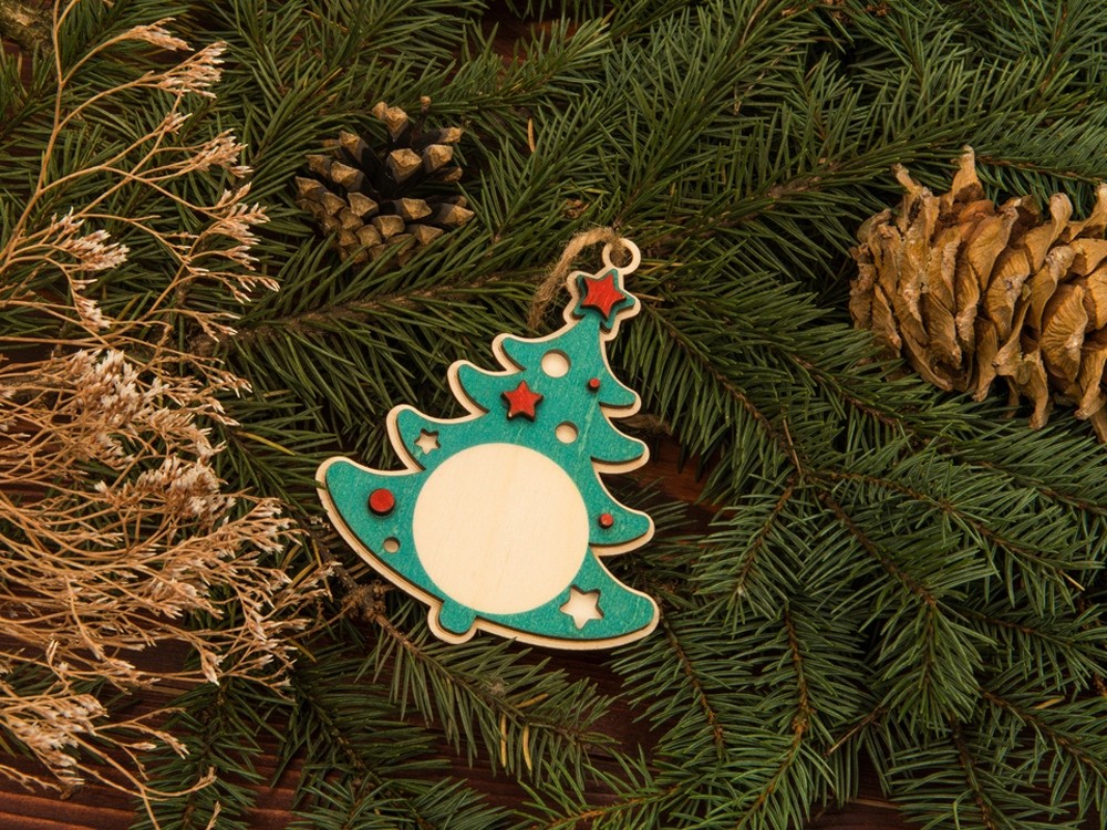 Елочная экоигрушка в виде главного новогоднего дерева – атмосферный и праздничный сувенир. Елочка изготовлена из березовой фанеры и украшена тонировкой красного и зеленого цвета. Этот небольшой новогодний презент отлично укладывается в концепцию экоподарка, при производстве и тонировании используются натуральные материалы и красители.