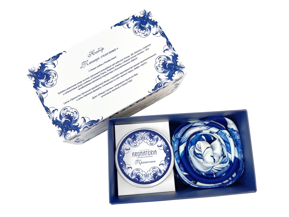 Купить Набор: платок «Гжель» и свеча «Птица счастья», с нанесением логотипа компании, индивидуального изображения или гравировкой, Вы можете в магазине корпоративных подарков и бизнес сувениров DIMLE.Более подробную информацию можно уточнить у менеджера по телефону: +7 (977) 760-71-47