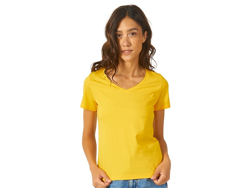 Купить Футболка "Heavy Super Club" женская с V-образным вырезом, золотисто-желтый, с нанесением логотипа компании, индивидуального изображения или гравировкой, Вы можете в магазине корпоративных подарков и бизнес сувениров DIMLE.Более подробную информацию можно уточнить у менеджера по телефону: +7 (977) 760-71-47