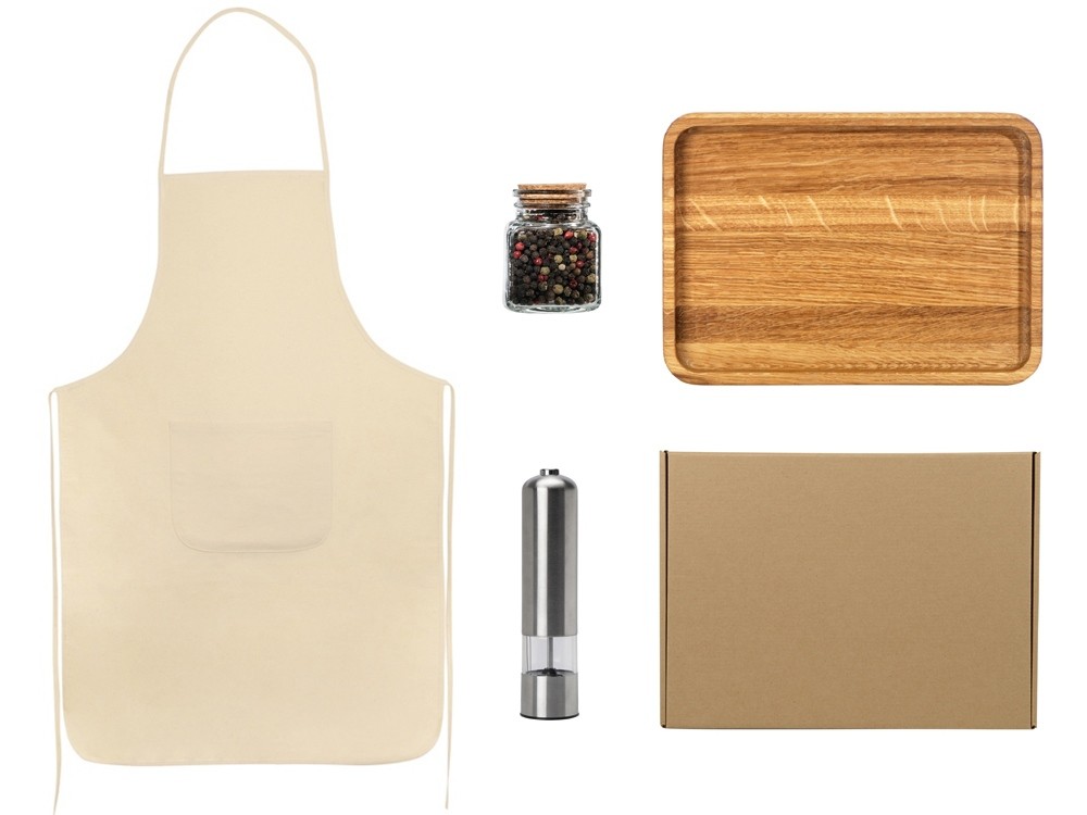 Купить Подарочный набор для кухни с фартуком, подносом, мельницей и специями, с нанесением логотипа компании, индивидуального изображения или гравировкой, Вы можете в магазине корпоративных подарков и бизнес сувениров DIMLE.Более подробную информацию можно уточнить у менеджера по телефону: +7 (977) 760-71-47
