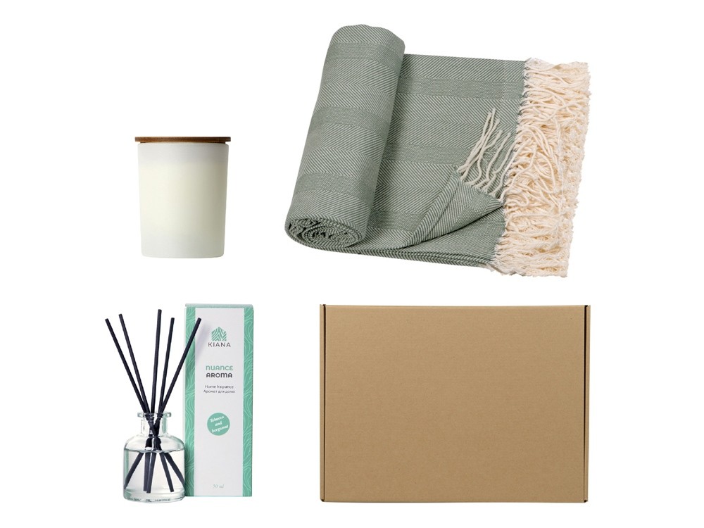 Купить Подарочный набор с пледом, свечой и диффузором, оливковый, с нанесением логотипа компании, индивидуального изображения или гравировкой, Вы можете в магазине корпоративных подарков и бизнес сувениров DIMLE.Более подробную информацию можно уточнить у менеджера по телефону: +7 (977) 760-71-47