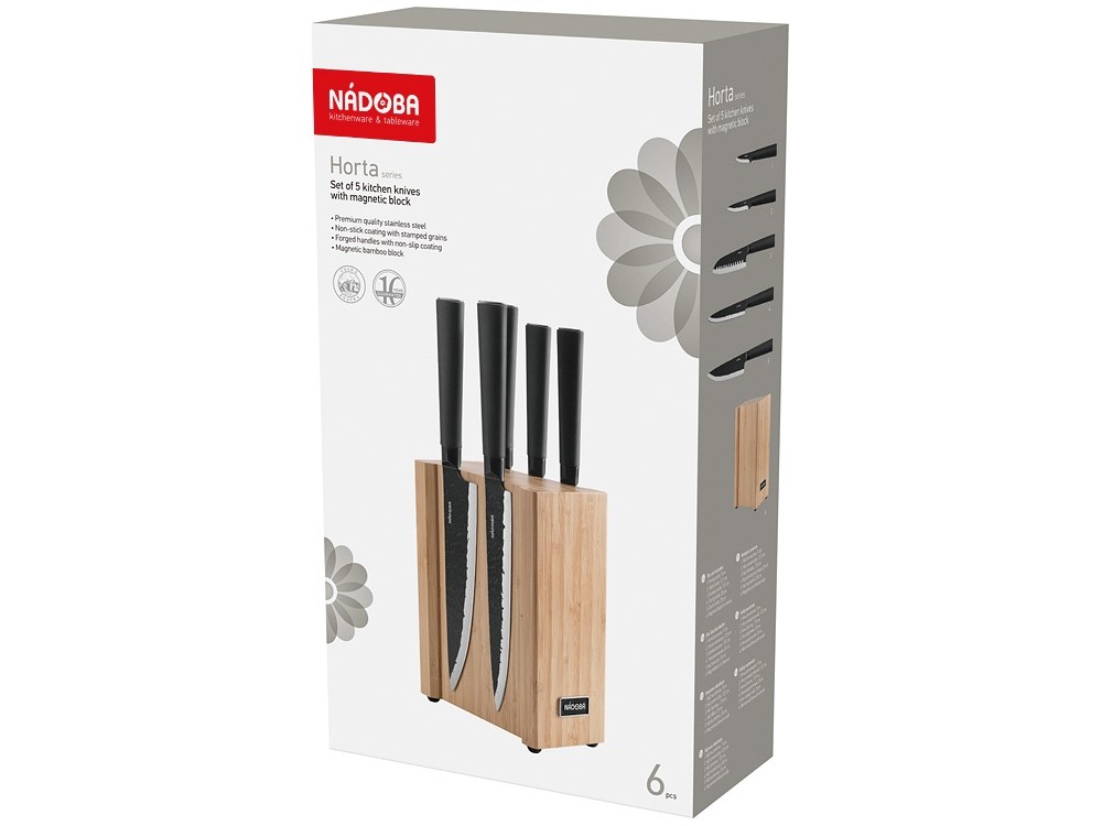 Купить Набор из 5 кухонных ножей на магнитном блоке, NADOBA, серия HORTA, с нанесением логотипа компании, индивидуального изображения или гравировкой, Вы можете в магазине корпоративных подарков и бизнес сувениров DIMLE.Более подробную информацию можно уточнить у менеджера по телефону: +7 (977) 760-71-47
