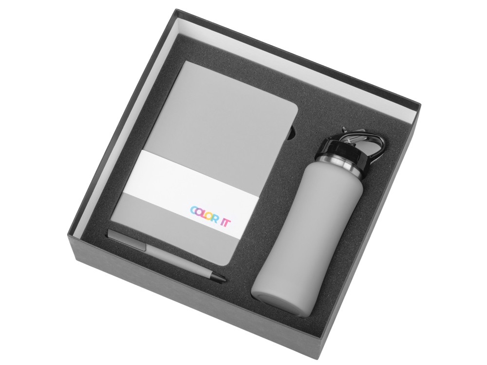 Купить Подарочный набор c блокнотом C2, ручкой и бутылкой, серый, с нанесением логотипа компании, индивидуального изображения или гравировкой, Вы можете в магазине корпоративных подарков и бизнес сувениров DIMLE.Более подробную информацию можно уточнить у менеджера по телефону: +7 (977) 760-71-47