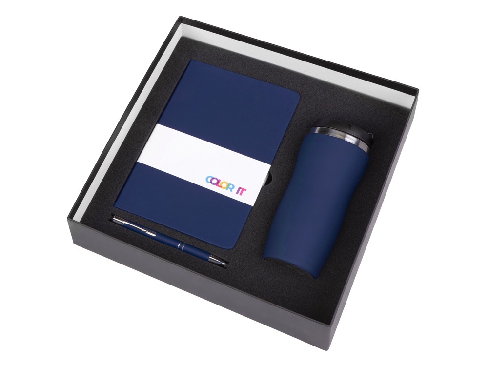 Купить Подарочный набор с блокнотом С3, металлической ручкой и термокружкой, темно-синий, с нанесением логотипа компании, индивидуального изображения или гравировкой, Вы можете в магазине корпоративных подарков и бизнес сувениров DIMLE.Более подробную информацию можно уточнить у менеджера по телефону: +7 (977) 760-71-47