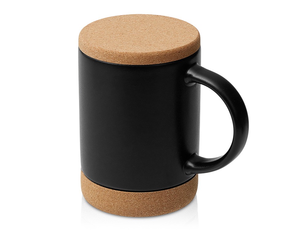 Купить Кружка 450 мл с пробковым дном с крышкой "Корк & Бон", черный, с нанесением логотипа компании, индивидуального изображения или гравировкой, Вы можете в магазине корпоративных подарков и бизнес сувениров DIMLE.Более подробную информацию можно уточнить у менеджера по телефону: +7 (977) 760-71-47