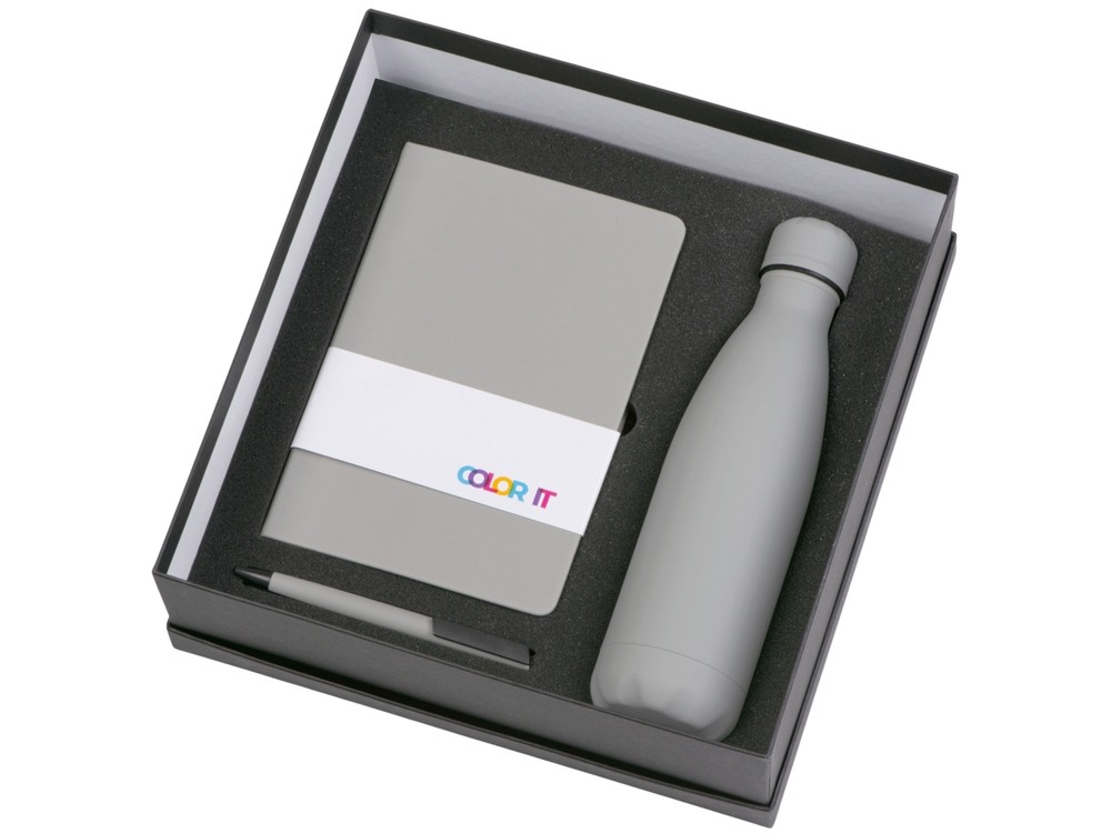Купить Подарочный набор c блокнотом C1, ручкой и термобутылкой, серый, с нанесением логотипа компании, индивидуального изображения или гравировкой, Вы можете в магазине корпоративных подарков и бизнес сувениров DIMLE.Более подробную информацию можно уточнить у менеджера по телефону: +7 (977) 760-71-47