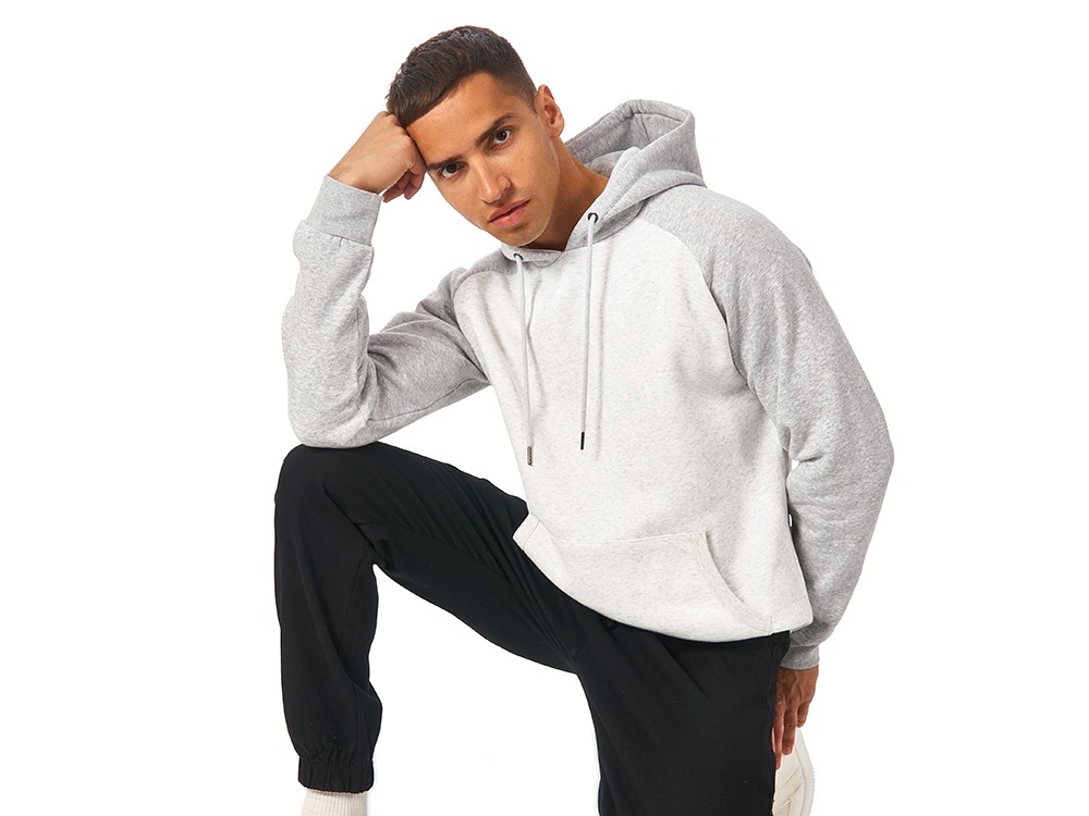 Толстовка с капюшоном (худи) из плотного футера с мягким начесом внутри. Модная и практичная модель, подходит для прогулок по городу, активного отдыха, путешествий и, конечно, промо мероприятий. - Прямой силуэт. - Контрастный рукав реглан и капюшон. - Капюшон с подкладкой из основного материала с металлическими люверсами, круглым шнуром с металлическими наконечниками. - Удобный карман-кенгуру, край отделан рибом 1х1. - Низ толстовки и манжеты рукавов обработаны рибом 1x1. - Полотно с небольшим содержанием полиэстера долго сохраняет форму и не мнется.