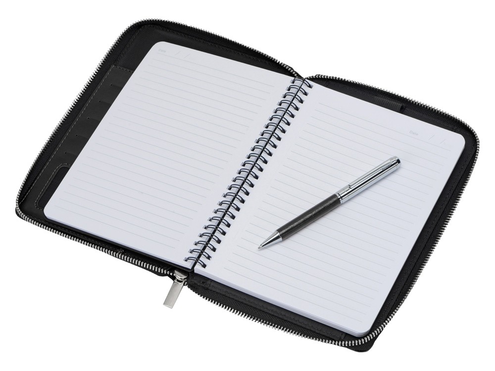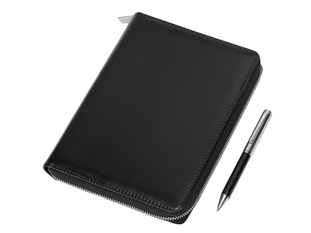 Купить Бизнес-блокнот на молнии А5 «Fabrizio» с RFID защитой и ручкой, черный, с нанесением логотипа компании, индивидуального изображения или гравировкой, Вы можете в магазине корпоративных подарков и бизнес сувениров DIMLE.Более подробную информацию можно уточнить у менеджера по телефону: +7 (977) 760-71-47